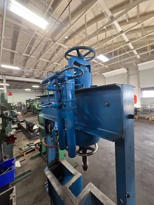 RAM MOVEMENT IS FACILITATED BY A RAPID SCREW TRAVERSE, ALLOWING QUICK, EASY ADJUSTMENTS VIA A CONVENIENT HANDWHEEL. RAPID RAM RETURN ACTIVATES UPON OPENING THE RELEASE VALVE AND CAN BE HALTED AT ANY POINT BY CLOSING THE VALVE. THE ADJUSTABLE TABLE PERMITS EASY VERTICAL MOVEMENT UTILIZING A SELF-LOCKING HOIST.