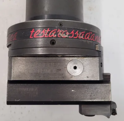 THE D'ANDREA TRM 125 IS A PRECISION FINISH BORING HEAD. IT FEATURES A CAT 50 HOLDER TYPE AND INCLUDES A MODULAR CONNECTION OF MB80. THE OVERALL LENGTH OF THE ENTIRE PIECE MEASURES 18 INCHES, AND IT IS DESIGNED WITH COOLANT THROUGH CAPABILITY. THE SPECIFIED OPERATIONAL RANGE IS O 004 0 >< 0001 0. THE UNIT COMES EQUIPPED WITH A D’ANDREA SFTP 50 INSERT CARTRIDGE, A D’ANDREA PS 11.40 BORING SLIDE, AND A D’ANDREA 41.6.80.01.050.49 CAT50 MB80 MODULAR TOOL HOLDER.