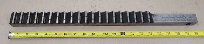 THE UNIT IS A DAVIS KEYSEATER BROACH, MODEL 1-1/4 KEYSEATER, DESIGNED FOR PRECISION TOOLING TASKS. THIS KEYSEATER BROACH HAS A WIDTH OF 1-1/4 INCHES, A HEIGHT OF 1-1/4 INCHES, AND A LENGTH OF 20 INCHES, WITH A PITCH OF 3/4 INCHES.