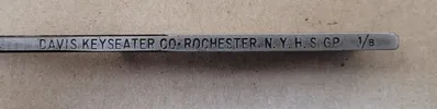 THE DAVIS GP 1/8” KEYSEATER BROACH IS A TOOLING COMPONENT MANUFACTURED BY DAVIS KEYSEATER CO. THE SPECIFIC DIMENSIONS OF THIS BROACH ARE 1/8 INCH IN WIDTH, 3/8 INCH IN HEIGHT, AND 16 INCHES IN OVERALL LENGTH (OAL). THIS TOOL IS DESIGNED FOR KEYSEATING TASKS, AS INDICATED BY THE MODEL NAME 1/8 KEYSEATER.