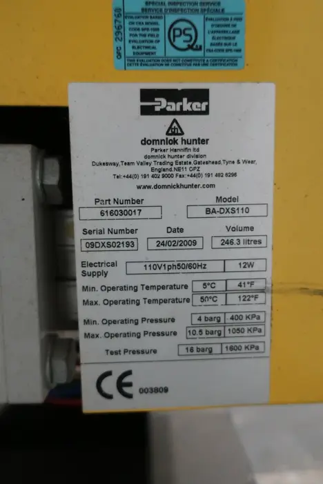 DOMNICK HUNTER BAM-110 COMPRESSED AIR BREATHER PURIFIER AIR COMPRESSOR, 616030017 BA-DXS110