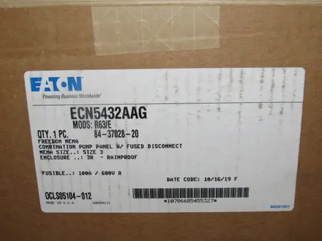 This lot contains (1) Eaton ECN5432AAG combination pump panel w/ fused disconnect.