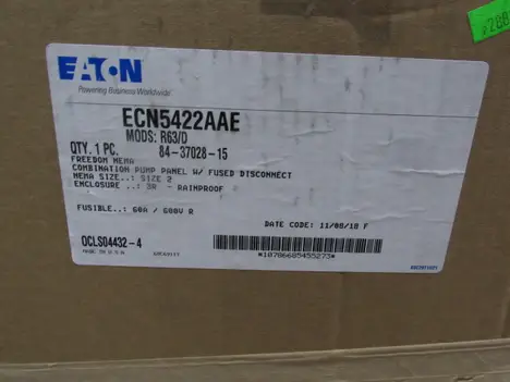 This lot contains (1) Eaton ECN5422AAE Combination Pump Panel w/ Fused Disconnect.