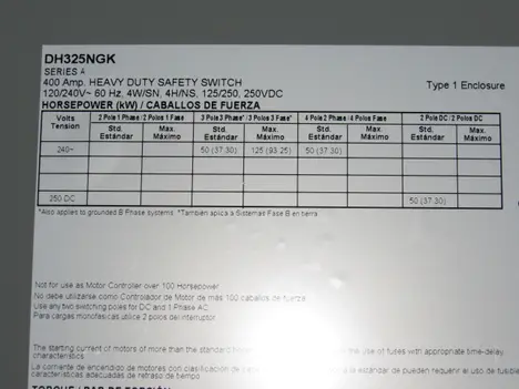 This lot contains (1) Eaton DH325NGK heavy duty safety switch.