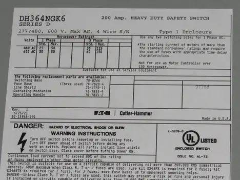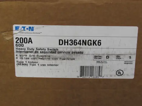 This lot contains (2) Eaton DH364NGK6 heavy duty safety switches.