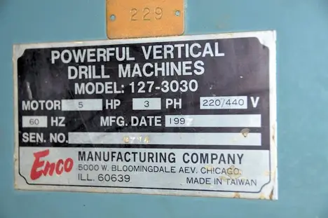 ENCO MODEL 127-3030, Floor Standing Drilling and Tapping Machine, S/N 3294