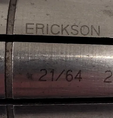 THIS IS A SET OF SIX ERICKSON COLLETS MANUFACTURED BY ERICKSON. THE SET INCLUDES VARIOUS SIZES: THREE COLLETS MEASURING 1 INCH, ONE COLLET AT 5/8IN, ONE COLLET AT 21/64IN, AND ONE COLLET AT 5/32IN. THESE COLLETS ARE INTENDED FOR ENHANCING MACHINING PRECISION, SUITABLE FOR GENERAL TOOLING AND ACCESSORY REQUIREMENTS.