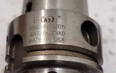 THE ERICKSON HSK40 HPVTT031315 IS A SHRINK FIT CHUCK DESIGNED FOR PRECISION TOOLING. THIS SET OF FOUR CHUCKS FEATURES AN 8MM CLAMPING DIAMETER (D1) AND AN HSK40A INTERFACE, CLASSIFYING IT AS A SHORT VERSION. THE OVERALL LENGTH (OAL) IS APPROXIMATELY 4.0 INCHES, WITH A LENGTH A OF 3.16 INCHES AND A LENGTH L OF 1.5 INCHES. ADDITIONAL SPECIFIED DIAMETERS INCLUDE D2 AT 21.5MM AND D3 AT 27.0MM. THE CHUCKS HAVE AN 8MM HOLE DIAMETER.