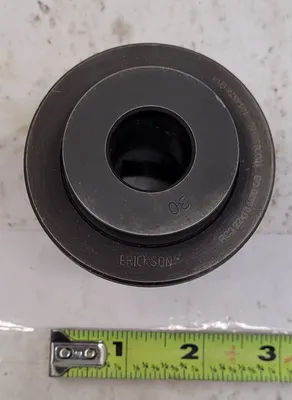 THIS IS AN ERICKSON RC3 22X18 M30 OB COMPRESSION TAP CHUCK, MODEL 1000036450, MANUFACTURED BY ERICKSON. THE TOTAL OVERALL LENGTH (OAL) OF THIS TOOLING IS 3 INCHES. IT FEATURES AN ARBOR HOLE DIAMETER OF .86 INCHES AND A BODY DIAMETER OF 1.875 INCHES.