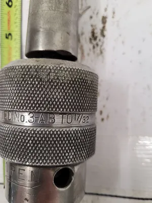 THIS IS AN ETTCO KEYLESS DRILL CHUCK, MODEL NO 3-AB, DESIGNED TO ACCOMMODATE DRILLING NEEDS UP TO 17/32". THE CHUCK FEATURES A #4 MT MOUNT AND HAS A 5.25" SHANK LENGTH. THE APPROXIMATE OVERALL LENGTH OF THE UNIT IS 9".