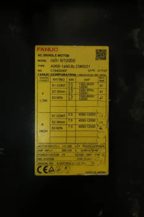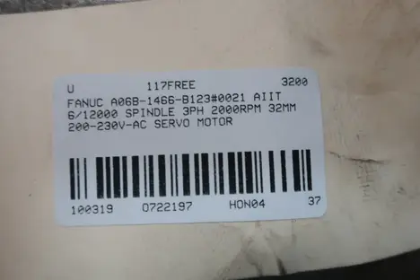 FANUC A06B-1466-B123#0021 AIIT 6/12000 SPINDLE 3PH 2000RPM 32MM 200-230V-AC SERVO MOTOR