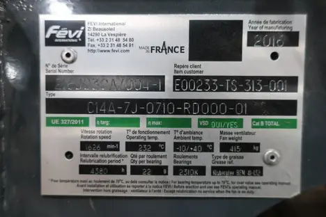 FEVI C14A-7J-0710-RD000-01 CENTRIFUGAL FAN BLOWER 3KW 28IN 460V-AC D601193