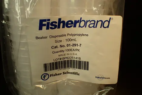 Fisher 100ml 3oz Polypropylene Disposable Beakers: 100/pack, 01-291-7, NEW!