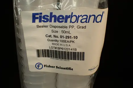 Fisher 50ml 1-1/2 oz Polypropylene Disposable Beakers: 100/pack, 01-291-10, NEW!