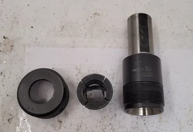 THE FL TOOLS FL-SP581 IS A COLLET CHUCK DESIGNED AS A TOOL HOLDER. THIS UNIT FEATURES A 1.5" STRAIGHT SHANK WITH A SHANK LENGTH OF 2.75 INCHES. THE OVERALL ASSEMBLED LENGTH OF THE TOOL IS APPROXIMATELY 6.5 INCHES.