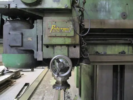 GIDDINGS & LEWIS OPENSIDE PLANER MILL Machine Serial No. ? Machine Model No. ? New Date: 1956 Converted from planer to planer mill Approx. 1982 Table Size: 9' x 36' Table Travel: 37' Maximum Height Under The Cross Rail: 8' Side Head Vertical Travel: ? (1) 30 HP Futurmill Head on Rail (non-swiveling) (1) 30 HP Futurmill Side Head (non-swiveling) (18) Spindle Speeds of Both Heads: 53 to 900 RPM Manual Quill Travel in Both Heads: 8" Stepless Table Speeds: .5 to 64 FPM Spindle Taper Both Heads: #50 National Standard Machine is in plant and can be inspected under power.