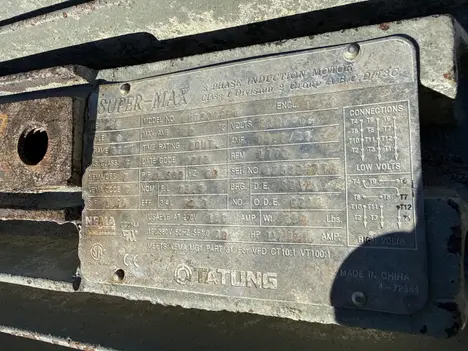 MOTOR: FRAME: 324T, HP: 40, VOLTS: 230/460, RPM: 1770, HZ: 60