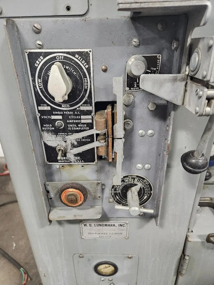 THE GROB 4V-24 VERTICAL BAND SAW FEATURES A 24-INCH THROAT DEPTH AND A MAXIMUM WORK HEIGHT OF 12 INCHES. IT IS POWERED BY A 3 HP, 3-PHASE MOTOR, AVAILABLE IN 230V OR 460V, PROVIDING INFINITELY VARIABLE BLADE SPEEDS FROM 40 TO 5,000 FPM. THIS MACHINE USES A 179-INCH BLADE LENGTH AND ACCOMMODATES BLADE WIDTHS RANGING FROM 1/8 INCH TO 1 INCH. THE TILTING TABLE MEASURES 28 INCHES BY 24 INCHES AND OFFERS A TILT CAPACITY OF 45° RIGHT AND 10° LEFT. STANDARD FEATURES INCLUDE A HEAVY-DUTY CAST IRON TABLE, BALANCED, BALL-BEARING-MOUNTED CAST ALUMINUM PULLEYS, A SPEED INDICATOR, A BLADE WELDER, HARD ALUMINUM-BRONZE SAW GUIDES, AND A WORK LIGHT. MANUFACTURED IN THE USA BY GROB INC., THE UNIT HAS APPROXIMATE DIMENSIONS OF 54 INCHES L X 48 INCHES W X 88 INCHES H AND WEIGHS APPROXIMATELY 1,790 LBS.