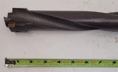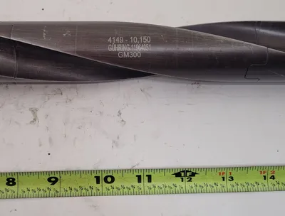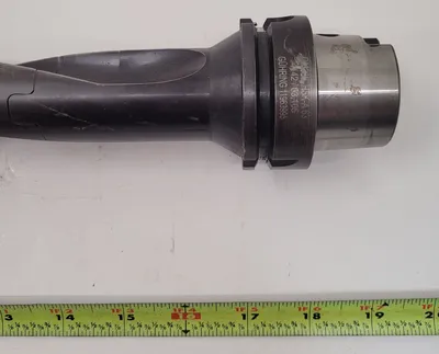 THE GUHRING HSK-A 63 TO GM300 MODULAR TOOL SYSTEM IS COMPRISED OF TWO EXTENSIONS FEATURING A 15° TWIST AND A MODULAR STEP DRILL HEAD. THE SYSTEM INCLUDES AN HSK-A63 HOLDER. THE OVERALL LENGTH OF THE ITEM IS 19-3/8” AND THE INSERT END DIAMETER MEASURES 1.91”. THE SPECIFIC COMPONENTS ARE IDENTIFIED BY GUHRING NUMBERS 12328943, 11964051 (4149—10,150), AND 11963995 (HSK-A63 HOLDER 4142/63,105).