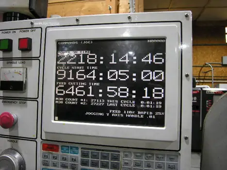 Model: VF-3 Travels: 40” x 20” x 25” Table: 48” x 18” Table max. weight: 3,500# Spindle speeds: 7,500 rpm, 2-speed geared Spindle taper: Cat 40 Spindle HP: 20/15 Rapid travels: 710 ipm Max. cutting speeds: 500 ipm ATC: 20 Max. Door opening: 48.50” Weight: 12,500 lbs. Wired: 220V/3 phase Equipped with: Geared head 20 HP spindle motor 20 place tool changer Haas controls: with updated flat screen “C” package includes: Chip auger, programmable coolant nozzle, 256K Mem, 3.5” floppy disc, Quick Code programming, Rigid tap, 4th axis drive installed, Rotation & Scaling, Macros Coolant thru spindle Manuals & Parameters on disc Note: New way covers installed on X axis last year due to rubber wipers wearing, and brand new way covers on Y just installed after photos and video were taken. SN: 10113, new 1997 and spindle runs dead quiet. Hours: Cycle Start: 9,164, Feed Cutting: 6,461