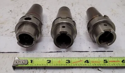 THIS HAIMER HSK40 SHRINK FIT TOOL HOLDER SET INCLUDES THREE HOLDERS COMPATIBLE WITH THE HSK40A INTERFACE. THE SET FEATURES CLAMPING DIAMETERS (D1) OF 12MM, 11MM, AND 8MM. THE APPROXIMATE OVERALL LENGTH (OAL) ON TWO OF THE HOLDERS IS 4.33 INCHES AND 3.92 INCHES. THE TECHNICAL SPECIFICATIONS FOR THE HOLDERS INCLUDE LENGTH A MEASUREMENTS OF 3.55 INCHES AND 3.16 INCHES. DIAMETER 2 (D2) MEASURES 24.5MM AND 21.5MM, WHILE DIAMETER 3 (D3) MEASURES 32MM AND 27MM. LENGTH L MEASUREMENTS ARE 1.5 INCHES AND 2.0 INCHES.