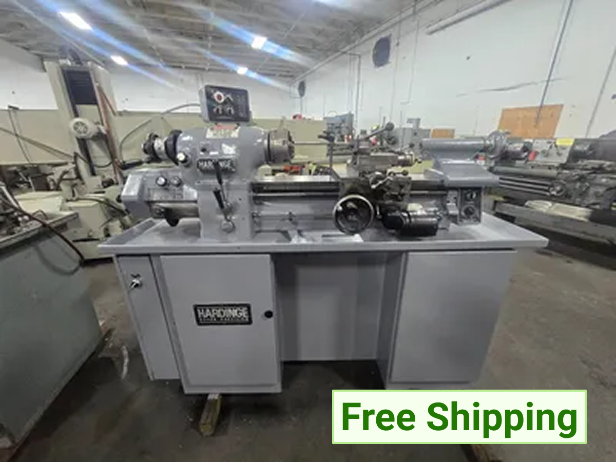 THE 11” X 18” HARDINGE HLV-H-EM TOOL ROOM LATHE FEATURES A BALL-BEARING SPINDLE CONSTRUCTION WITH A HARDINGE THREADED NOSE. THE MACHINE OFFERS AN 11-INCH SWING OVER THE BED AND 18 INCHES BETWEEN CENTERS. SPINDLE CAPACITY IS 1-1/16 INCHES WITH ROUND TYPE 5C COLLETS, EXPANDING TO 6 INCHES WITH STEP CHUCKS AND 5 INCHES WITH JAW CHUCKS. VARIABLE SPINDLE SPEEDS RANGE FROM 125 TO 3,000 R.P.M.