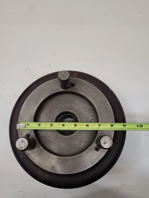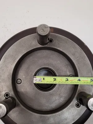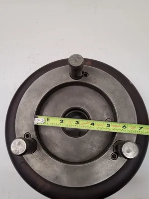 THIS IS A HARDINGE-SJOGREN NO. 3 SPEED CHUCK WITH A D1-8 BACK PLATE. THE CHUCK UTILIZES 3 PINS, EACH MEASURING 1.0 INCH. THE BORE/HUB DIAMETER IS 2.5 INCHES. THE PLATE FEATURES AN OUTER DIAMETER OF 8 INCHES AND AN INNER DIAMETER OF 5-3/8 INCHES. THE OVERALL DIMENSIONS OF THE CHUCK ARE AN 11-INCH OVERALL DIAMETER AND A 7.5-INCH HEIGHT. THE CENTER DIAMETERS ARE 3.16 INCHES (OUTER) AND 2.21 INCHES (INNER).