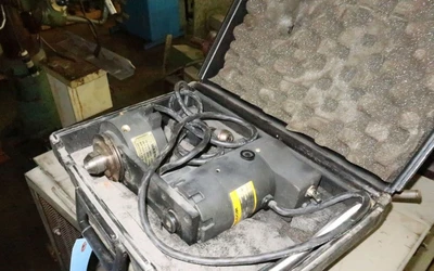 THE HARIG E-20 ROTO-SPINDLE (P/N 175-100) IS AN ECONOMICAL EDM SPINDLE DESIGNED TO MOUNT TO CONVENTIONAL VERTICAL RAM EDM MACHINES, ENHANCING PRODUCTIVITY AND HOLE-MAKING SPEED UP TO 50%. THIS UNIT HOLDS 20MM TOOLING AND IS COMPATIBLE WITH HARIG FLUSH CHUCKS FOR SMALLER ELECTRODES. IT FEATURES A BALDOR 1/15 HORSEPOWER, 110V AC VARIABLE SPEED MOTOR, OFFERING AN OPERATIONAL RANGE OF 10-260 RPM. THE SPINDLE RUN-OUT IS SPECIFIED AT 0.0001", AND IT ALLOWS FOR EXCELLENT FLUSHING VIA A 1/8 -27 NPT FLUSHPORT. THE MAXIMUM CURRENT THROUGH THE SPINDLE IS 10 AMPS. THE SPINDLE HOUSING IS INSULATED FROM THE MOTOR. IT IS A COMPACT, LIGHTWEIGHT UNIT WITH A TOTAL WEIGHT OF 9 LBS, ALLOWING OPERATORS TO WORK WITH "TENTHS" FOR IMPROVED CONCENTRICITY.