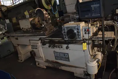 THE MODEL 275 HEALD "SIZEMATIC" EXTENDED-BRIDGE INTERNAL GRINDER IS AN AUTOMATED MACHINE FEATURING A 48" EXTENDED, SWIVELLING BRIDGE. THE GRINDER IS EQUIPPED WITH AN ANILAM "MINI-WIZARD" DIGITAL READOUT SYSTEM, A BEHIND-WHEEL DRESSER, AND A 10" 3-JAW CHUCK. GRINDING IS PERFORMED BY A 14000 RPM HEALD "RED-HEAD" GRINDING SPINDLE POWERED BY A 5 HP/3600 RPM MOTOR.