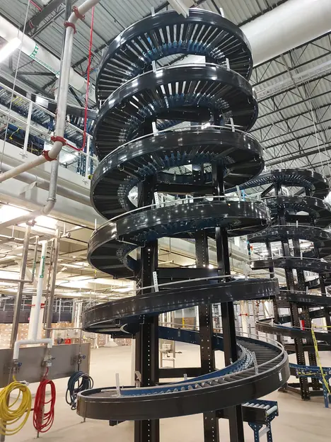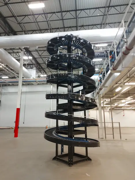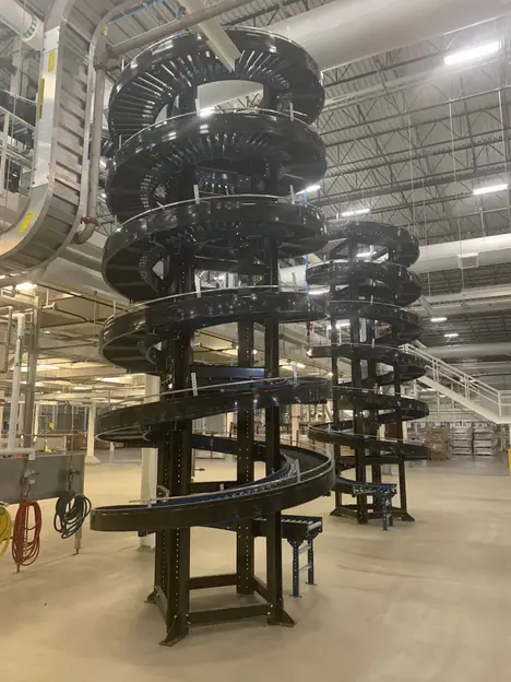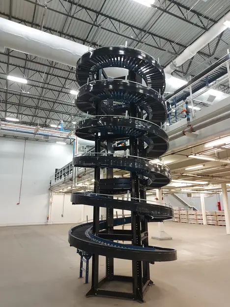 HILMOT CORP. MG18B3XM (4) HELIX CONVEYOR SYSTEMS. JOB # 56924F, SERIES 1000, SPIRAL CONVEYORS ARE 19'8" HIGH WITH A CONVEYOR BELT WIDTH OF 18"
