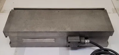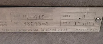 THE HITACHI MU-618 IS A MAGNETIC CHUCK FROM THE HITACHI BRAND. THIS TOOLING IS IDENTIFIED BY THE MODEL NUMBER MU-618 AND HAS SURFACE DIMENSIONS OF 18.5" X 6".