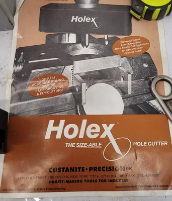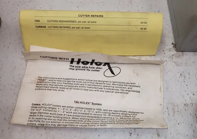 THIS HOLEX CIRCLE CUTTER TOOL, IDENTIFIED BY ITEM 04255618, IS DESIGNED FOR PRECISION CUTTING APPLICATIONS. THE TOOL FEATURES A CUTTING DIAMETER RANGE OF 1 TO 12 INCHES AND A MAXIMUM CUTTING DEPTH OF 1-1/2 INCHES. IT UTILIZES AN R8 SHANK FOR MOUNTING AND INCLUDES A 1-1/2 INCH DIAMETER STRAIGHT SHANK. THIS UNIT IS SUPPLIED BY THE OEM HOLEX.