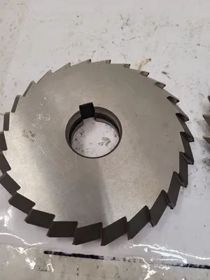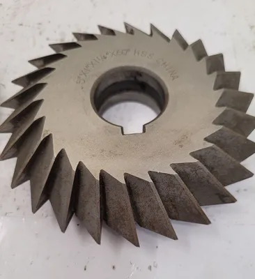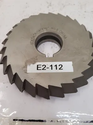 THIS LOT INCLUDES TWO HSS SINGLE ANGLE MILLING CUTTERS, OFTEN REFERRED TO AS 5-INCH SAWS. THE FIRST CUTTER IS A 60-DEGREE SAW WITH A 5-INCH CUTTER DIAMETER, A 1-INCH WIDTH OF FACE, AND A 1-1/4 INCH ARBOR HOLE SIZE. THE SECOND CUTTER IS A 90-DEGREE SAW, ALSO FEATURING A 5-INCH CUTTER DIAMETER AND A 1-1/4 INCH ARBOR HOLE SIZE, BUT WITH A WIDTH OF FACE OF 0.750 INCHES.
