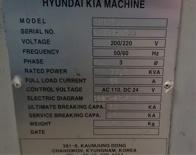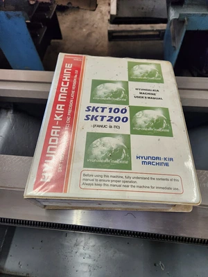 THE HYUNDAI – KIA SKT100 CNC TURNING CENTER IS EQUIPPED WITH FANUC SERIES OI-TC CONTROLS AND A 12-POSITION TURRET. IT FEATURES A KITAGAWA B-206 HYDRAULIC 3-JAW CHUCK WITH A 6-INCH CHUCK SIZE, COLLET CLOSER CHUCK, AND TAILSTOCK. THE MACHINE OFFERS A SWING OVER THE BED OF 21.7 INCHES AND A SWING OVER THE CROSS SLIDE OF 13.8 INCHES, WITH A MAXIMUM TURNING LENGTH OF 11.8 INCHES AND A BAR CAPACITY OF 1.77 INCHES. TRAVEL SPECIFICATIONS INCLUDE 8.3 INCHES ON THE X-AXIS AND 13 INCHES ON THE Z-AXIS.