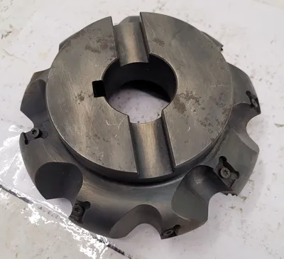 THIS INGERSOLL CUTTING TOOLS 36W8B-0607558R11 IS A FACE MILL FEATURING A 6-INCH DIAMETER. THE OVERALL HEIGHT OF THE TOOL IS APPROXIMATELY 2.5 INCHES. IT IS DESIGNED WITH A 1.5-INCH ARBOR DIAMETER ON THE BACK AND ACCOMMODATES 9 INSERTS. THIS TOOL IS SPECIFIED FOR USE IN VARIOUS MACHINING APPLICATIONS.
