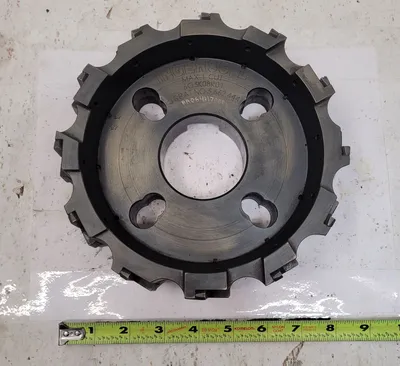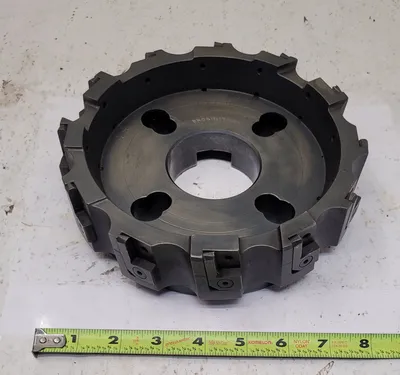 THIS IS AN INGERSOLL 6G3K08R01 MAX-I-CUT 8" INDEXING FACE MILL FROM INGERSOLL CUTTING TOOLS. THIS TOOLING ITEM IS DESIGNED FOR PRECISION CUTTING AND ACCOMMODATES 12 INSERTS. THE MODEL NUMBER IS 6G3K08R01 AND THE BRAND IS INGERSOLL.