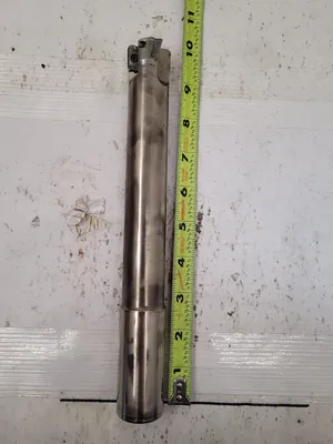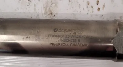 THIS IS A LOT OF TWO INGERSOLL CHASEMILL TE90APD END MILLS DESIGNED FOR PRECISION MILLING TASKS. BOTH TOOLS FEATURE A 3-FLUTE DESIGN WITH A 1.25-INCH CUTTING DIAMETER AND A 1.25-INCH SHANK DIAMETER. THE LOT INCLUDES TWO DIFFERENT LENGTHS: ONE END MILL HAS AN APPROXIMATE 10-INCH OVERALL LENGTH, AND THE SECOND END MILL HAS AN APPROXIMATE 6.5-INCH OVERALL LENGTH.