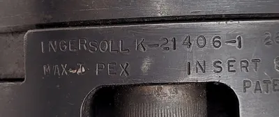 THIS INGERSOLL MAX-I-PEX K-21406-1 IS AN INDEXABLE INSERT CUTTING TOOL. THE TOOL FEATURES 4 FLUTES AND 22 INSERT SEATS. ITS OVERALL LENGTH IS APPROXIMATELY 12.5 INCHES. IT IS COMPATIBLE WITH A CAT 50 HOLDER TYPE. THE TOOL'S PART NUMBER IS K-21406-1, AND IT IS ASSOCIATED WITH PATENT NO: 3/662/444.
