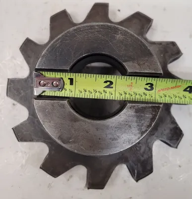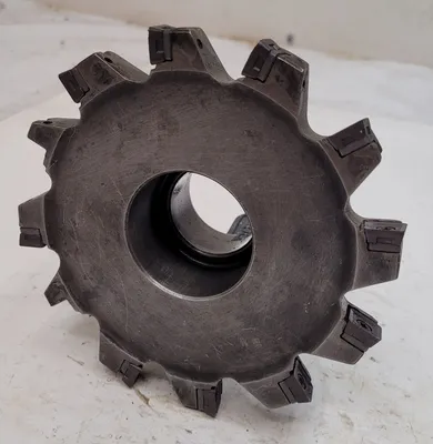 THIS IS AN ISCAR ESB D6.0-0.62-12-R12 INDEXABLE SLOT MILL CUTTER. THE CUTTER FEATURES A 6-INCH DIAMETER AND HAS 12 FLUTES OR INSERTS. THE OVERALL LENGTH (OAL) IS 2.25 INCHES, THE HUB DIAMETER MEASURES 3.125 INCHES, AND THE BORE DIAMETER IS 1.5 INCHES.
