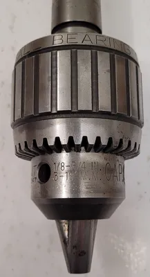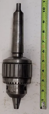 THIS IS A JACOBS 18N BALL BEARING SUPER CHUCK, IDENTIFIED AS TYPE NO 18 / 4JT, DESIGNED FOR PRECISION DRILLING APPLICATIONS. THE CHUCK UTILIZES A 4MT ARBOR AND FEATURES A CAPACITY RANGE OF 1/8 TO 3/4 INCHES (3-19MM). THE OVERALL ASSEMBLED LENGTH OF THE PIECE IS APPROXIMATELY 10 INCHES. IT IS A BALL BEARING SUPER CHUCK TYPE FROM THE OEM JACOBS.