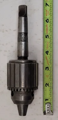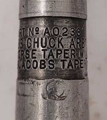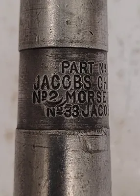 THIS ITEM IS A JACOBS 6A – 33 TAPER BALL BEARING CHUCK, MANUFACTURED BY JACOBS, FEATURING A 2MT JACOBS CHUCK ARBOR. IT IS A BALL BEARING TYPE CHUCK WITH A 6A – 33 TAPER SPECIFICATION. THE CHUCK HAS A CAPACITY OF 0–1/2IN. THE OVERALL LENGTH (OAL) OF THE ENTIRE PIECE, INCLUDING THE ARBOR, IS 6–3/4IN.