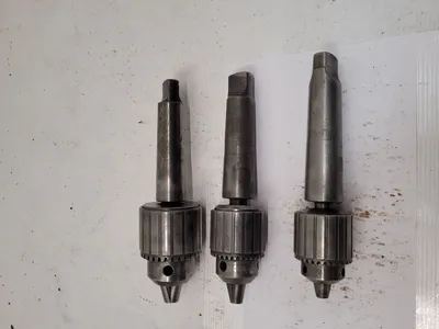 THIS OFFERING IS A SET OF THREE JACOBS DRILL CHUCKS WITH A COMBINED WEIGHT OF APPROXIMATELY 10LBS. ITEM 1 IS A JACOBS DRILL CHUCK 34-06 FEATURING A 6 TAPER AND A 0 TO 1/2 INCH OR 0-13MM CAPACITY. IT INCLUDES A 4 MORSE TAPER SHANK AND 6 JACOBS TAPER. ITEM 2 IS A JACOBS NO.11 SUPER CHUCK WITH A 0 TO 3/8 INCH CAPACITY AND A NO.4 MT SHANK. ITEM 3 IS A JACOBS CHUCK #36 -3 TAPER WITH A 4MT SHANK AND AN 18-80IN. / 5-20MM CAPACITY.