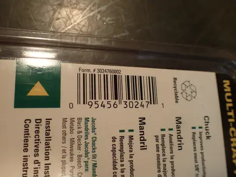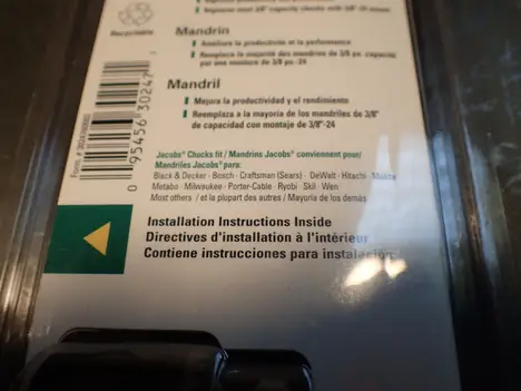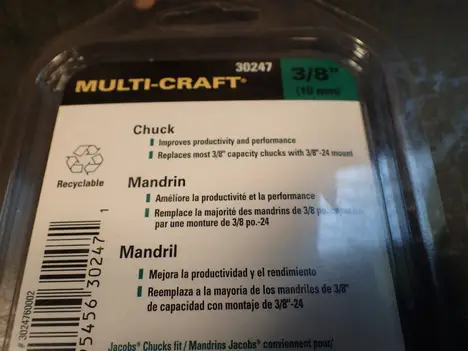Jacobs Multi-Craft 3/8" (10mm) Drill Chuck: 3/8" -24 Threaded Mount w/ Key 30247