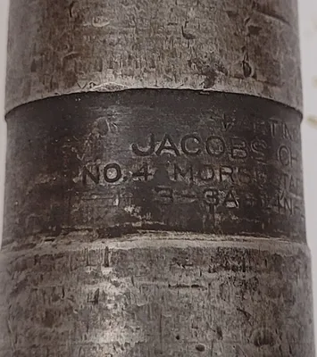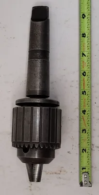 THIS ITEM IS A JACOBS NO 36 BALL BEARING CHUCK MANUFACTURED BY JACOBS. IT IS A BALL-BEARING TYPE CHUCK FEATURING A 4MT ARBOR. THE CHUCK HAS A CAPACITY RANGE OF 3/16 TO 3/4 INCHES. THE OVERALL LENGTH OF THE ENTIRE PIECE IS APPROXIMATELY 9 INCHES. NO KEY IS INCLUDED WITH THIS CHUCK.