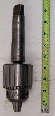THIS IS A JACOBS NO 36 BALL BEARING CHUCK, WHICH IS DESIGNED FOR TOOLING TASKS. IT FEATURES A 4MT ARBOR AND HAS A CAPACITY RANGE OF 3/16 TO 3/4 INCHES. THE APPROXIMATE OVERALL LENGTH OF THE ENTIRE PIECE IS 9 INCHES. NOTE THAT A KEY IS NOT INCLUDED WITH THIS CHUCK.