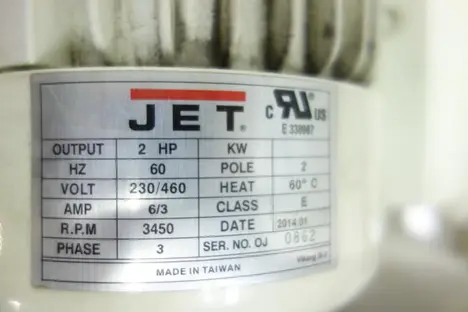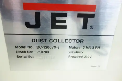 JET VORTEX CONE DC-1200VX-3 DUST COLLECTOR, 2 HP, 3 PH, 230/460 V