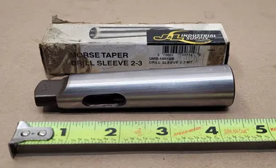 THIS ITEM IS A J&L INDUSTRIAL SUPPLY MT 2-3 DRILL SLEEVE, IDENTIFIED BY THE PART NUMBER QMS-10018B. IT IS DESIGNED FOR TOOLING APPLICATIONS, SPECIFICALLY FUNCTIONING AS A DRILL SLEEVE WITH A SIZE SPECIFICATION OF 2-3 MT.