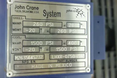 JOHN CRANE LEMCO LHXR-0750-SCS HEAT EXCHANGER, 260 PSI SHELL, 1500 PSI