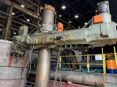 THE KAUKAUNA 140U PORTABLE UNIVERSAL DRILL & TAPPING MACHINE IS ENGINEERED FOR VERSATILITY AND POWER, FEATURING AN 8' ARM LENGTH AND A 22" COLUMN DIAMETER. THE MACHINE IS DESIGNED WITH PORTABLE USE IN MIND, INCLUDING A LIFTING BAIL AND HINGED SPREADER ARMS ON THE RUNWAY. KEY SPECIFICATIONS INCLUDE 18" OF POWER SPINDLE TRAVEL AND 60" OF VERTICAL TRAVEL FOR THE HEAD ON THE COLUMN. HORIZONTAL ADJUSTMENTS INCLUDE 36" ON RAILS AND 48" OF COLUMN TRAVEL ON THE RUNWAY.