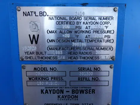 Kaydon Turbine Oil Conditioner Tank and (2) VKS-2-A-40-TOG Duplex Oil and Fuel Filter Vessels.